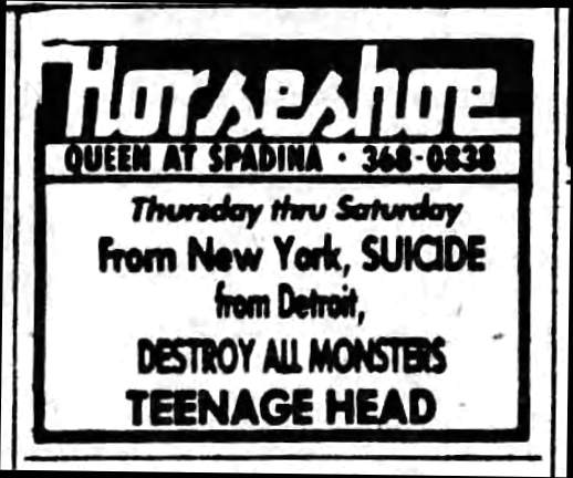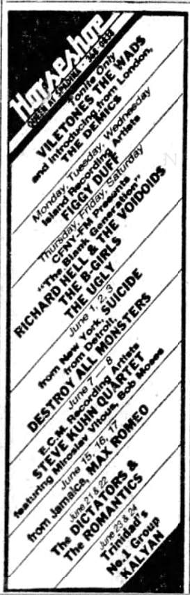 Ad 1: Labeled as "A Punk Music Mass". Scan taken from the Village Voice 28-Sep-72.