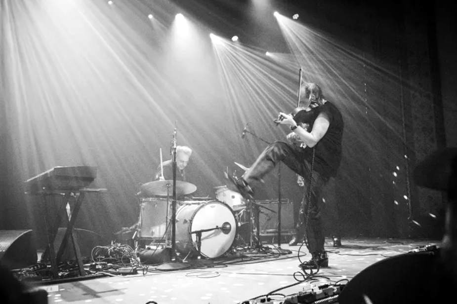 Warren Ellis (violin/Roland RD-700SX)/ Mick Turner (guitar) and Jim White (drums). |