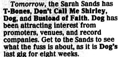 19-Jan-91 AU Melbourne,Sarah Sands [with T-Bones, Don't Call Me Shirley and Dog]