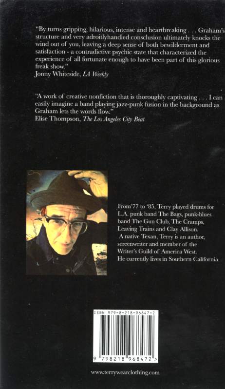 Content: Terry's inside account of the original punk rock music scene in Hollywood (1977-1985) and his time as drummer in two legendary LA punk groups, Bags and Gun Club. The last 150 pages are about his time with Jeffrey Lee Pierce's Gun Club. |