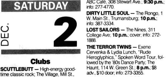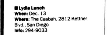 Listing: Scan of listing from LA Weekly 16-Dec-83.