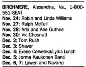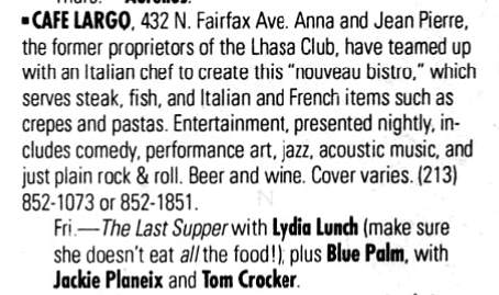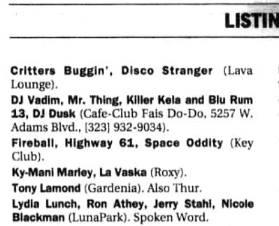 Listing: Scan of listing from LA Weekly 06-Jan-84.