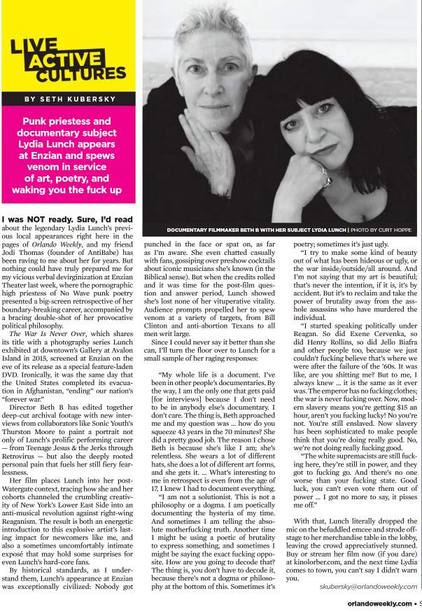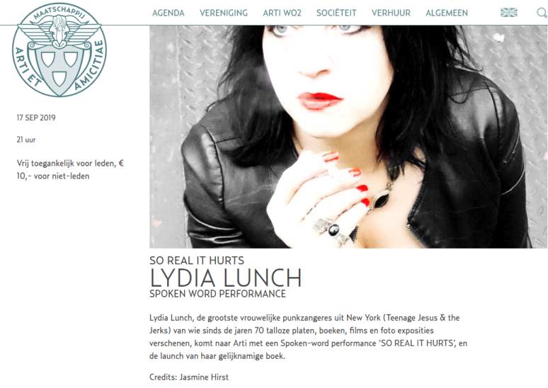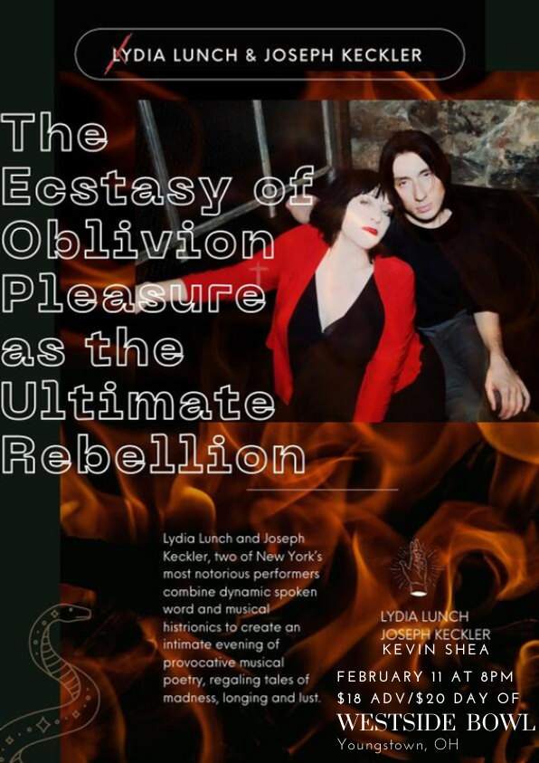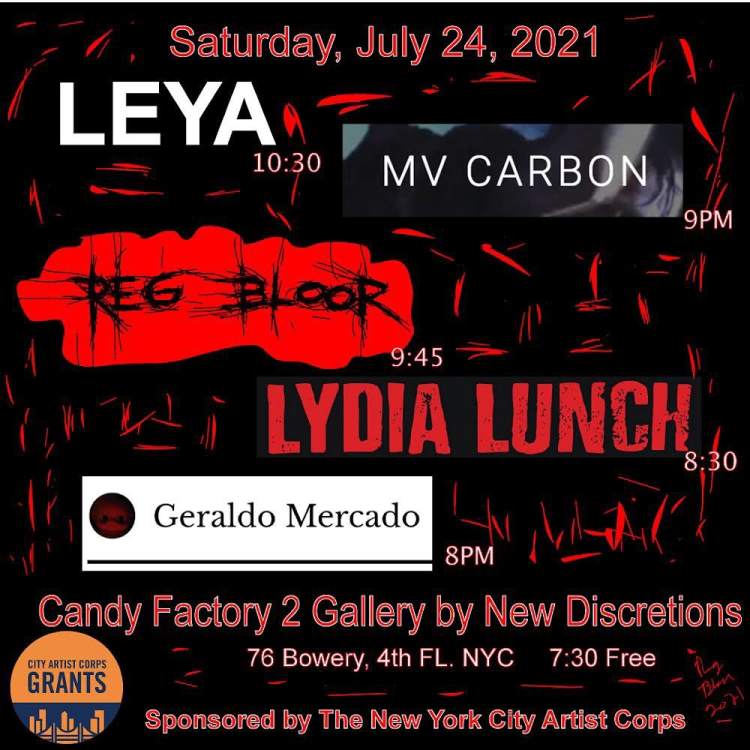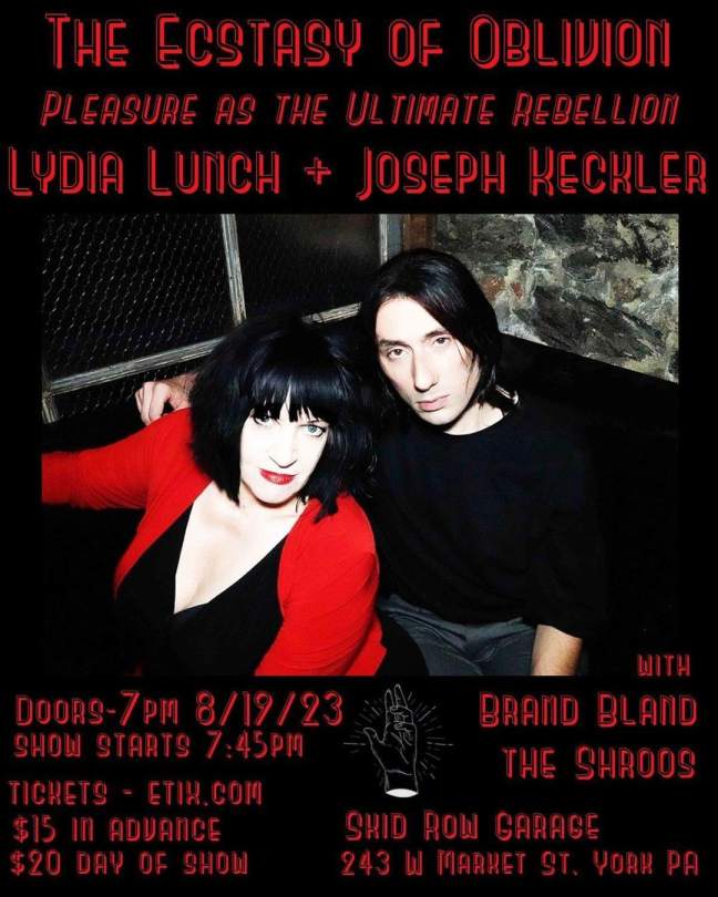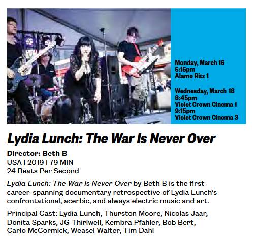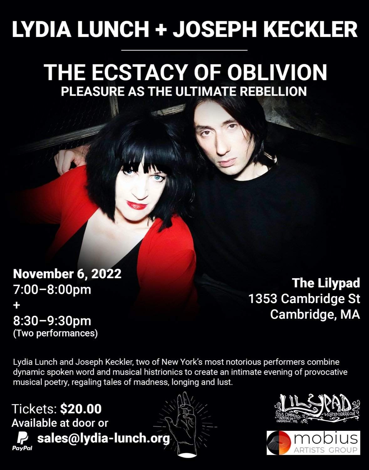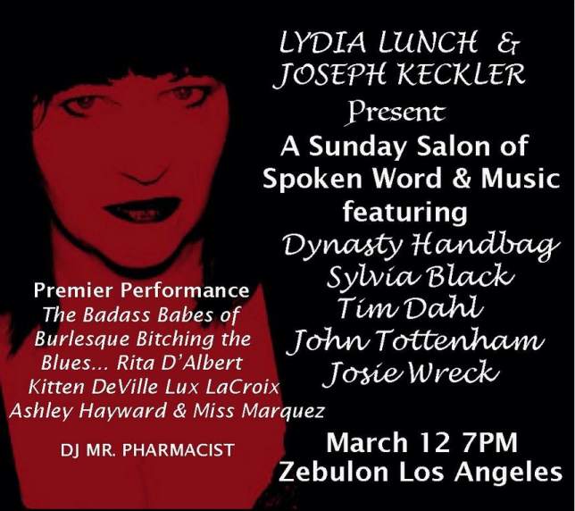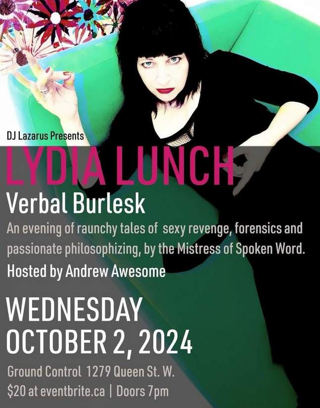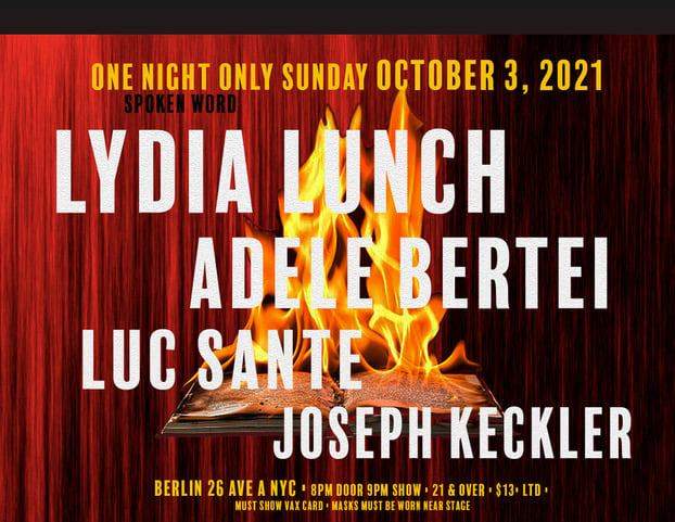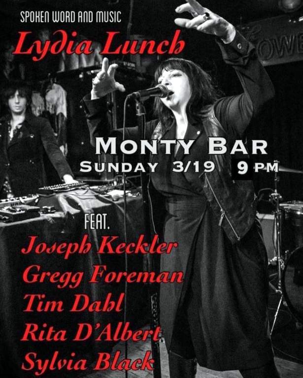 Note: Show preceded by a screening of Beth B's movie "Lydia Lunch: The War is Never Over". Film at 3:30 PM, followed by Q&A and show at 7 PM.