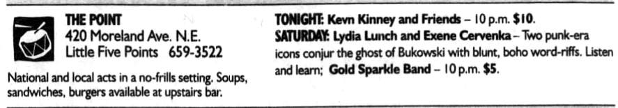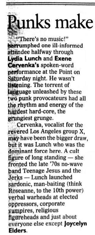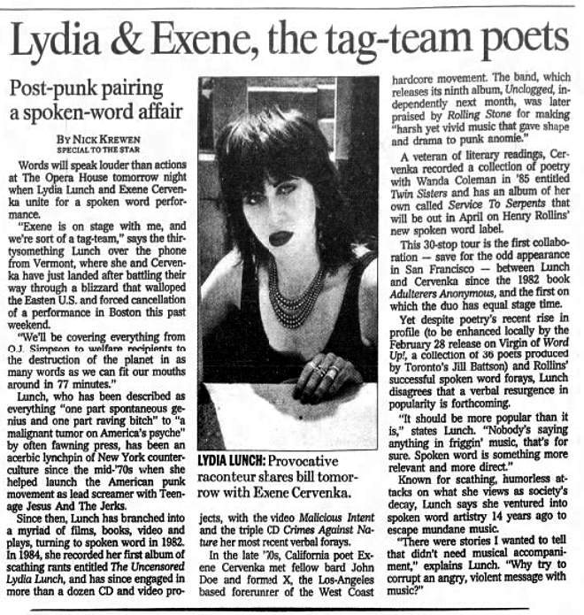 Note: Henry Rollins [Black Flag] attends the show. Lydia calls him up the next day. This is when their collaboration starts.