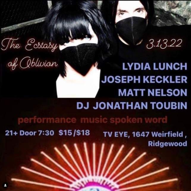 Note: Labeled as "The Ecstasy of Oblivion: A Sunday Salon of Spoken Word & Music".