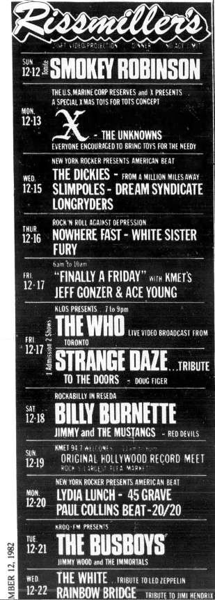 Ad: Scan of advert from LA Weekly 12-Dec-82.