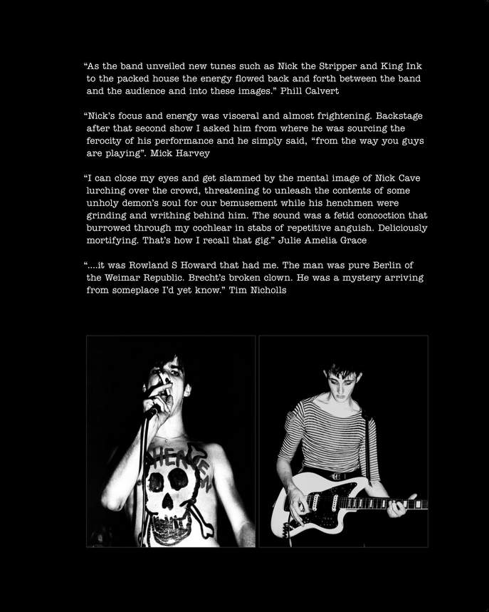 Content: 43 b/w photos, taken by Alison Lea in Adelaide on 24/25 January 1981 at the Tivoli Hotel. With memoirs by Mick Harvey and Phill Calvert and several who attended the shows. |