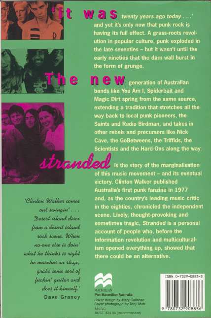 Content: The inside story of the emergence of the Saints, the Birthday Party, the Laughing Clowns, the Go-Betweens, Nick Cave, the Moodists, the Scientists, and many more great independent Australian bands, told by Clinton Wlaker, who witnessed it all first-hand. Covers the (Punk-) music scene in Australia 1976-92 with sections on the Birthday Party. Including many photos, with detailed (label) discography. |