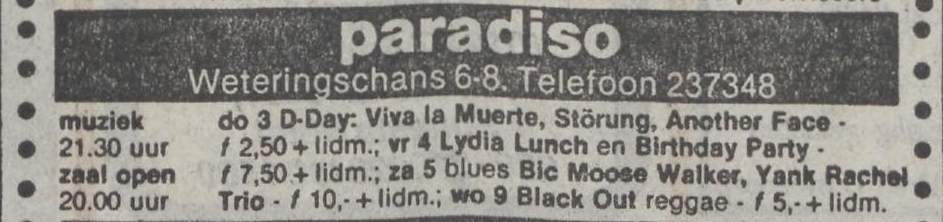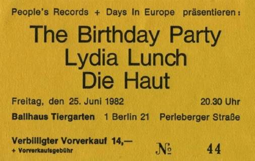 Dec-82 Note: Nick Cave's first live guest appearance with Die Haut (Christophe Dreher's band). They perform songs from the "Burnin' The Ice" album. |