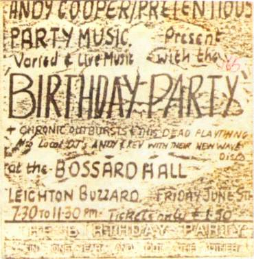 08-Feb-81 Flyer: Photo of flyer (alledgedly hand cut by Nick Cave on his kitchen table), sourced from Rock Posters Australia (FB group). |