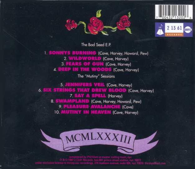 Remastered in 1997 by Phillip Klum at Master Cutting Room,NYC. Best sounding and most complete CD version of "The Bad Seed" & "Mutiny" EPs.