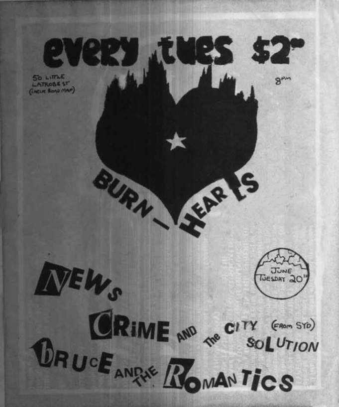 Simon Bonney (vocals)/ Dan Wallace-Crabbe (guitar)/ Lyndsay O'Meara (bass)/Kim Beissel (alto sax)/ Chris Astley (organ/piano) and Don McLennan (drums). |