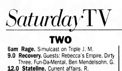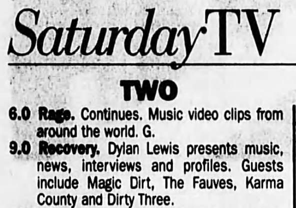 Listing: Scan of listing from The Age newspaper, 27-Nov-92.