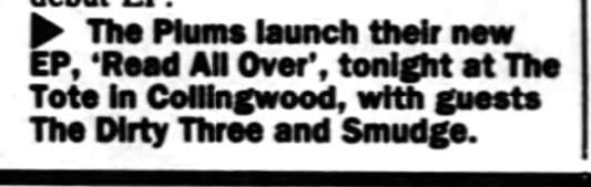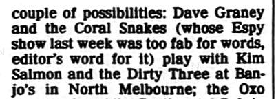 02-Dec-92 AU Melbourne-Collingwood,The Club [support for Dave Graney and the Coral Snakes]