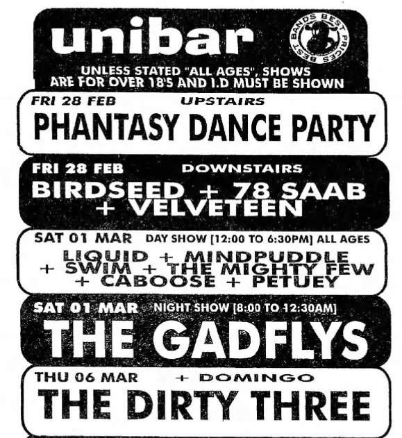 03-Jan-99 AU Perth,Murdoch University Tavern Mudslinger Festival [with Kim Salmon, Buffalo Tom, You Am I, Something For Kate]