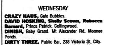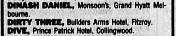 19-Dec-92 AU Melbourne-Abbotsford,Bakers Arms Hotel (Saturday night residency -2 sets)