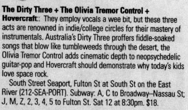 12-Jun-99 US NY,New York City,Chelsea Piers,South Street Seaport Atrium-Pier 17 Pavilion Bell Atlantic Jazz Festival [with Olivia Tremor Control, Hovercraft]