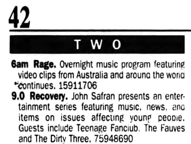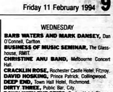 Listing: Scan of listing from The Age newspaper, 11-Dec-92.