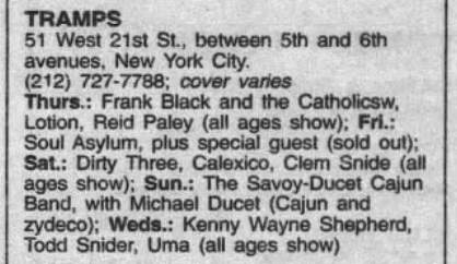 Note: Scan of listing from The Journal News 10-Jun-99.