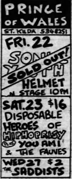 22-Jan-93 AU Melbourne-St.Kilda,Prince Of Wales Hotel [support for Sonic Youth, with Helmet]
