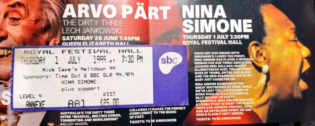 26-Jun-99 UK London,Queen Elisabeth Hall -Meltdown 99 festival "No rain. No mud. No prisoners." [with The Clique Group performing the music of Arvo Pärt]