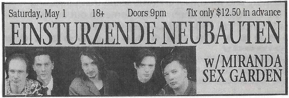 11-May-93 Note: Neubauten's engagement cancelled because of 10-May-93. |