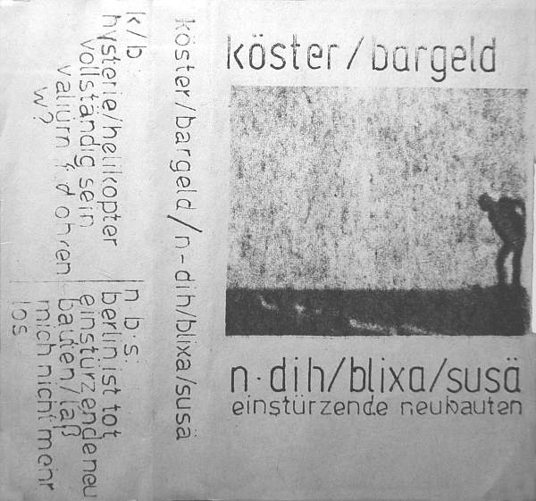 Tracklist: Side A: Köster/Bargeld: Hysterie/ Helikopter/ Vollständig Sein/ Valium für die Ohren/ W?// Side B: N·Dih/Blixa/Susä: Berlin Ist Tot/ Einstürzende Neubauten/ Laß Mich Nicht Mehr Los.