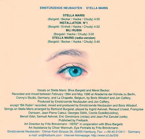 Notes: With Meret Becker (then Alex's wife) vocals on "Stella Maris" and string arrangement on "Stella Maris" by Bertrand Burgalat. Line-up: Blixa Bargeld, N.U.Unruh, FM Einheit & Alex Hacke. (Marc Chung had left).