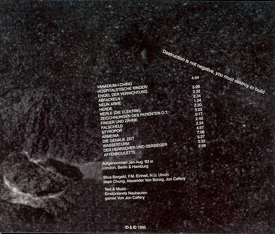 Recording info: Recorded @ Hafenklang studios,Hamburg in June 1981. Engineered by Neubauten.
