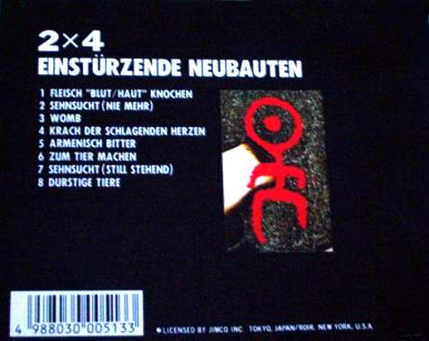 Notes: Copied from the "2x4" cassette album. Line-up: Blixa Bargeld, N.U.Unruh, FM Einheit & Marc Chung (+ Alex Hacke on track 8).