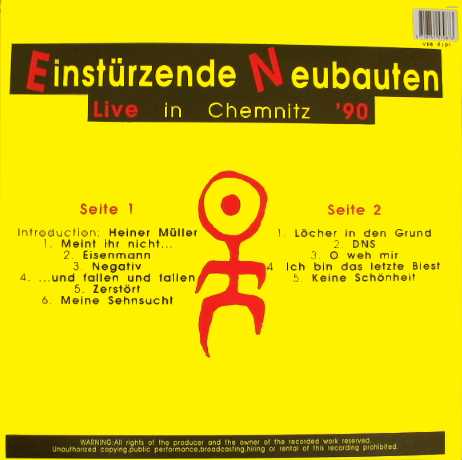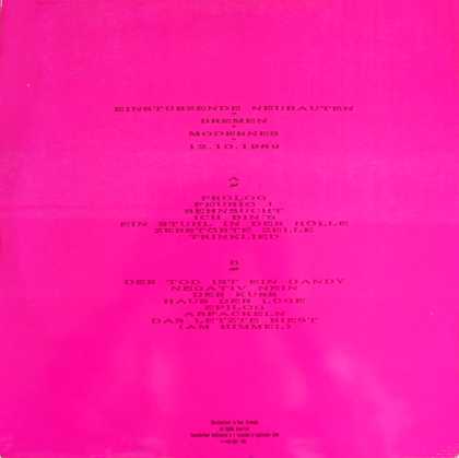 Notes: Line-up: Blixa Bargeld,N.U.Unruh,FM Einheit & Mark Chung (except on tracks 1&11). "Gestohlenes Band(ORF)" is not Neubauten, but just a tape they stole at the radiostation; "Bochum(Publikum)" is the audience; "NN" was recorded with a walkman with almost dead batteries. (*)Also available on the "80-83 Strategies Against Architecture" compilation album on Mute records. 31mins.