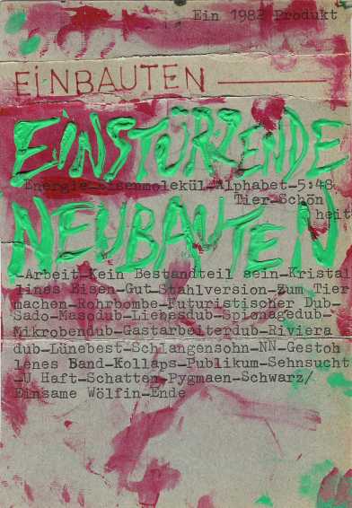 Notes: Cover made by Blixa. (*)Later released on "Das Abendprogramm" compilation LP. Line-up: Blixa Bargeld, N.U.Unruh, FM Einheit & Mark Chung.