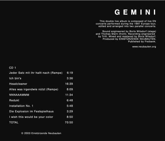 Notes: Line-up: Blixa Bargeld, N.U.Unruh, FM Einheit & Marc Chung (+ Alex Hacke on track 8).