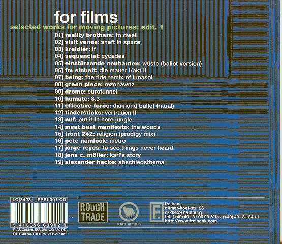 Info: Track 1: "Lieber Zuviel Als Zuwenig" V/A compilation LP; tracks 2,5&7: "Kalte Sterne" 2x7"; tracks 3&10: "Das Abendprogramm" V/A live compilation LP; track 4: "Kalt wie Eis" soundtrack LP; track 6: "Decoder" soundtrack LP/CD; track 8: "Q.E.D." V/A compilation 2LP/CD; ; track 9: "2x4" cassette; track 11: "Halber Mensch" VHS video.