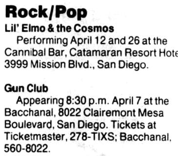 dates of studio recordings, all line-ups and other trivia related to the American band The Gun Club.
