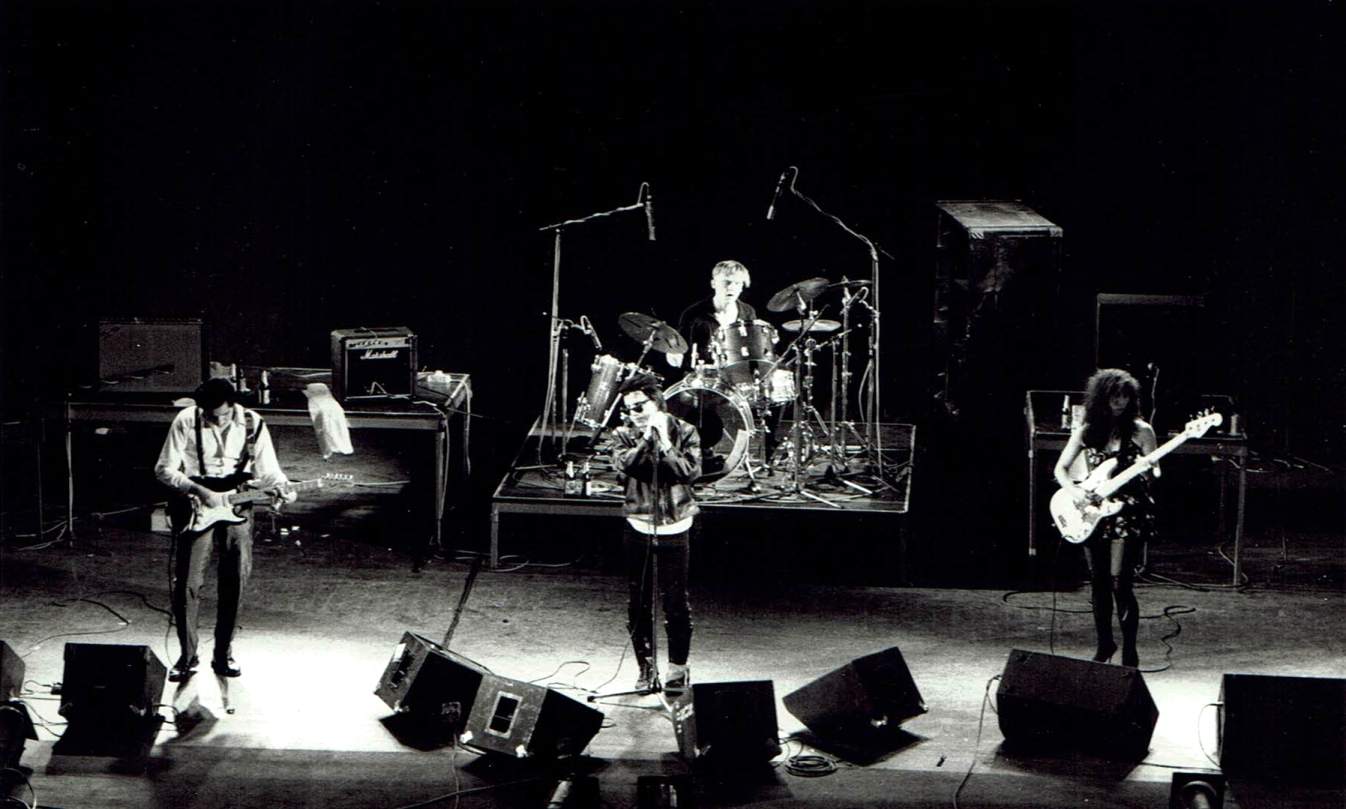 (l-r) Romi Mori, Jeffrey Lee Pierce, Nick Sanderson, Kid Congo Powers.