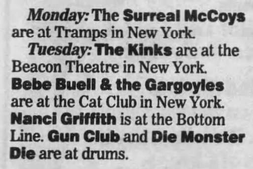 14-Dec-87 Setlist: She's Like Heroin To Me/ My Cousin Kim/ Like Calling Up Thunder/ Lupita Screams/ Yellow Eyes/ Hearts/ Fire Of Love [Jody Reynolds]/ Moonlight Motel/ Death Party/ Sex Beat/..and more... |