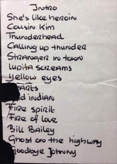 Setlist: Bad Indian/ Cousin Kim/ Thunderhead/ Like Calling Up Thunder/ Goodbye Johnny/ Sleeping In Blood City. |