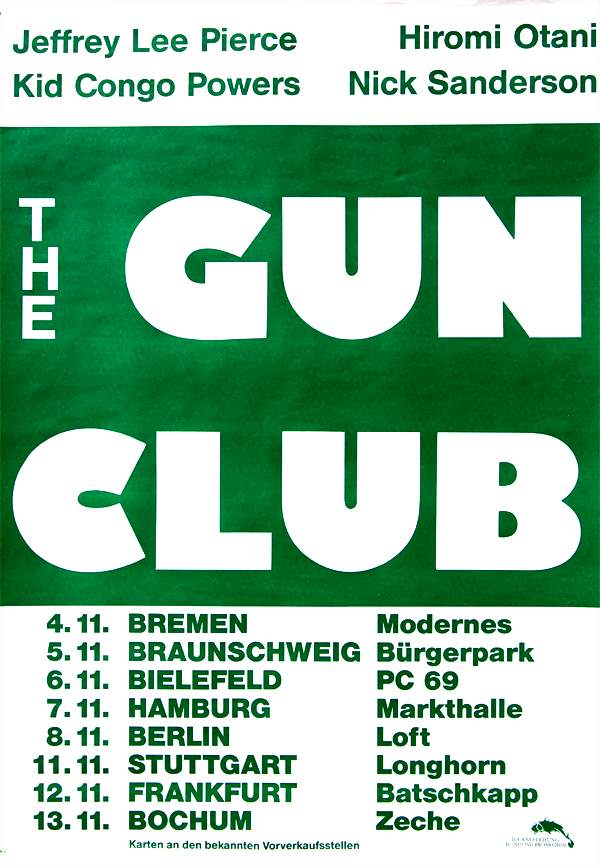 London October 1986. Close to 2 years after The Gun Club broke up Jeffrey contacts Kid Congo to re-start the band (with Romi Mori and Nick Sanderson [ex-Clock DVA] from his Jeffrey Lee Pierce Quartet) and record a new album. Kid was at the time living in Berlin and had just joined the Bad Seeds in September. |