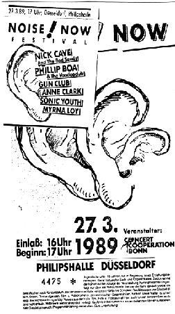 27-Apr-87 Setlist: Strange Fruit [Lewis Allan/Billie Holiday]/ My Cousin Kim/ Bad Indian/ Thunderhead/ Like Calling Up Thunder/ Stranger In Our Town/ Lupita Screams/ Hearts/ Devil In The Woods/ Fire Spirit/ Fire Of Love [Jody Reynolds]/ Sleeping In Blood City/ Goodbye Johnny/ The Breaking Hands/ Sex Beat/ Eternally Is Here. Poster: Scan of poster, sourced from Regionaal Archief Nijmegen. |
