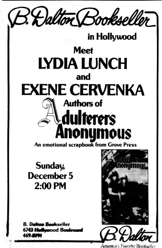 05-Dec-82 US CA Hollywood,Dalton's Bookstore (@ 6743 Hollywood Boulevard) Book signing (2PM-3PM) (with Exene Cervenka)