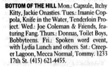 Listing: Scan of listing from LA Weekly 16-Dec-83.