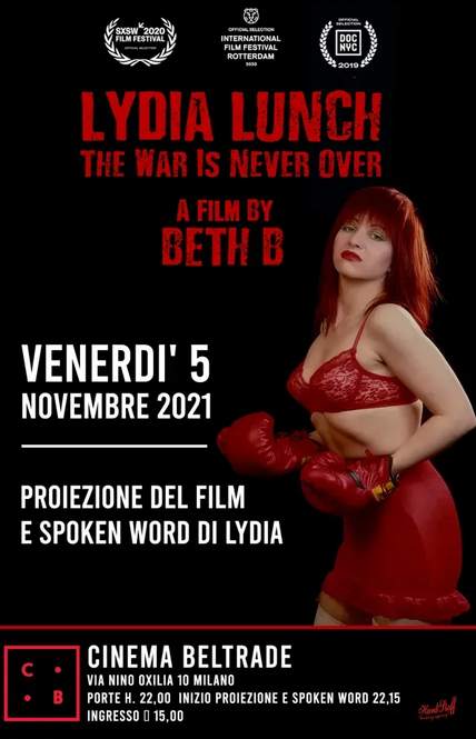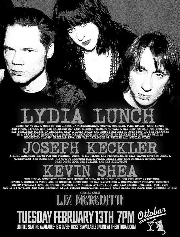 Note: Show preceded by a screening of Beth B's movie "Lydia Lunch: The War is Never Over". Film at 3:30 PM, followed by Q&A and show at 7 PM.