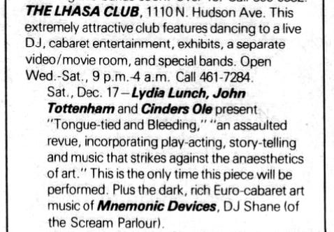 17-Dec-83 US CA,Los Angeles-Hollywood,Lhasa Club "Tongue-Tied and Bleeding" [with Mnemonic Devices]
