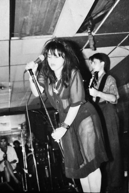 13.13 #1 @ the Underground NYC 17-June-1981: (l-r) Greg Williams (bass)/ Lydia Lunch (vocals)/ Alex MacNicol (drums) and Johnny Nation (guitar). Photo credit: Joseph Szkodzinski.