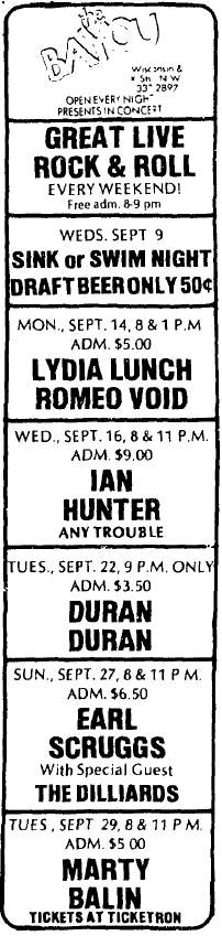 Ad: Microfilm image of ad from the Village Voice September 1981, courtesy of Jonathan Luftig. |