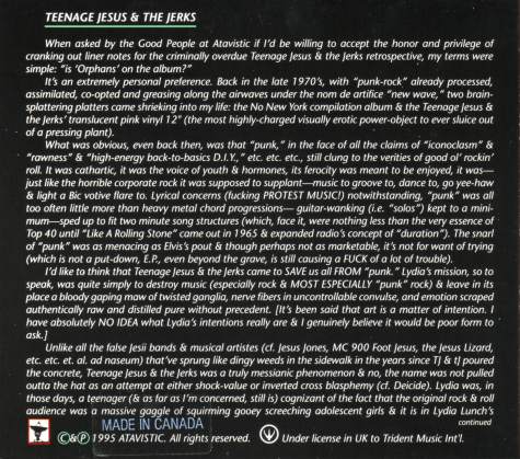 TEENAGE JESUS AND THE JERKS (LP/CS/CD)