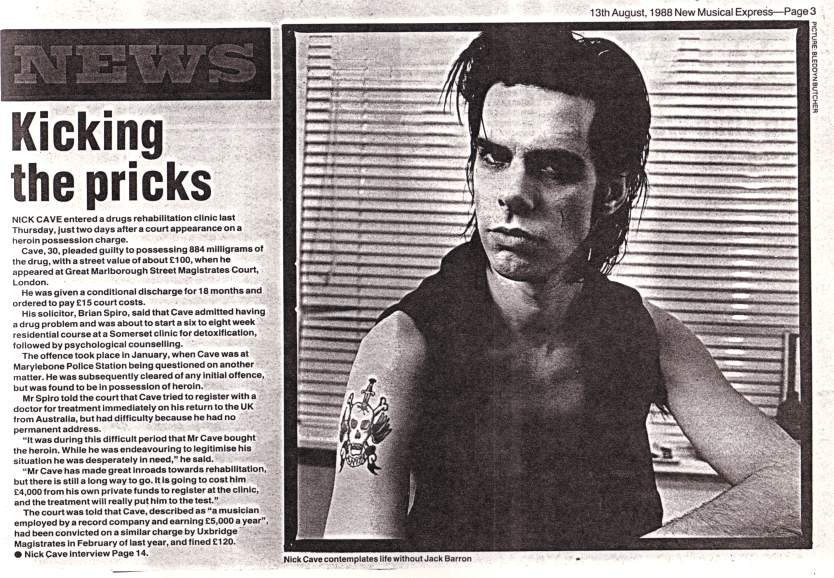 Content: Report about Nick Cave's admission into drugs rehab. The same issue also had the infamous Jack Barron article "The needle and the damage done". |