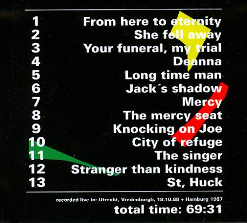 Tracklist: From Her To Eternity/ She Fell Away/ Your Funeral...My Trial/ Deanna/ Long Time Man/ Jack's Shadow/ Mercy/ The Mercy Seat/ Knockin' On Joe/ City Of Refuge/ The Singer// Stranger Than Kindness/Saint Huck.