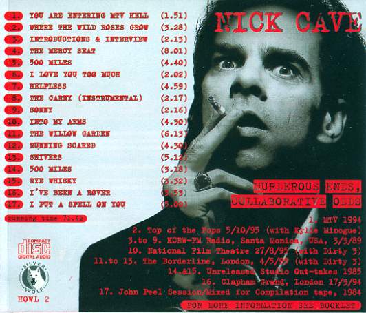 Tracklist: Nick Cave: The Atra Virago. Also including tracks by The Butthole Surfers, Einstürzende Neubauten, Diamanda Galas, William S.Burroughs, Swans, John Giorno Band, Chad & Sudan, Tom Waits and Chris Stein.
